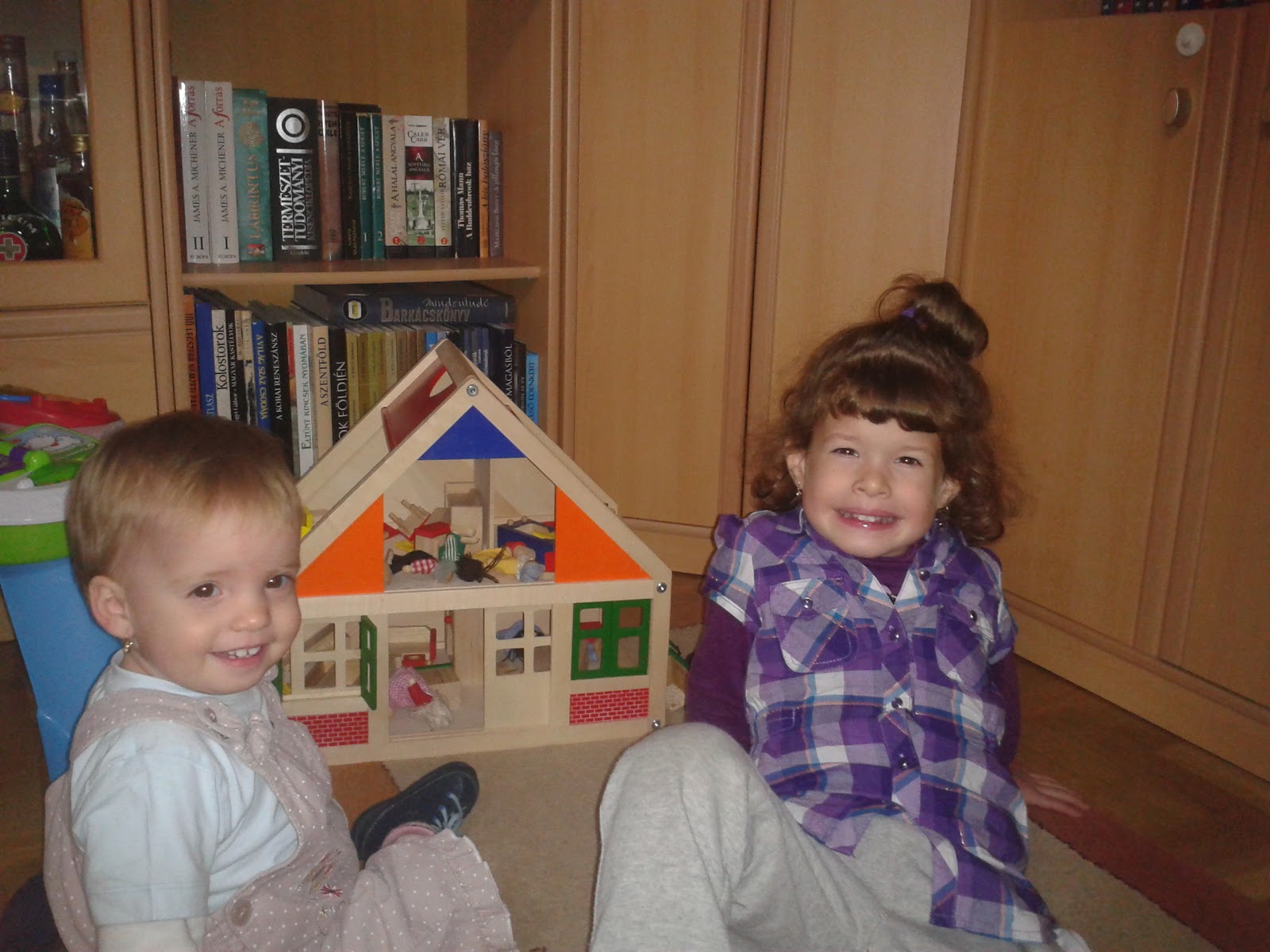 Nos, nem lett igazán rövid a bejegyzés...még egy gondolat a végére: amikor Zsófival kettesben itthon vagyunk, nagyon szépen elvan egyedül is, játszik, tesz-vesz, pakol, jön-megy, de azért igényli a társaságomat, sokszor megnézi, mit csinálok, kicsit odabújik hozzám, aztán megy vissza dolgára...viszont ha Fanni is ott van a közelében, akkor én szinte el is vagyok felejtve (illetve ha veszekedés van, akkor azért már rögtön én vagyok az első, akihez fordul...), annyira szépen elszórakoztatják egymást :-).
